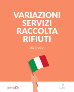 Vi informiamo che, in occasione della festività di sabato 25 aprile, i servizi di raccolta porta a porta potrebbero subire...